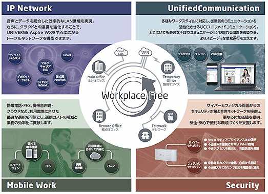 | ● AspireWX+ひかり電話オフィスタイプで通信費削減 IP電話サービスにも柔軟に対応。ひかり電話オフィスタイプを使用することで コスト削減を実現し、社員間のコミュニケーションをさらに活性化させます。 | |