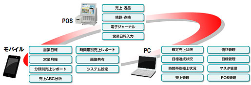 店長が必要とする売上情報と問題点をスマートフォンでリアルタイムに情報発信。